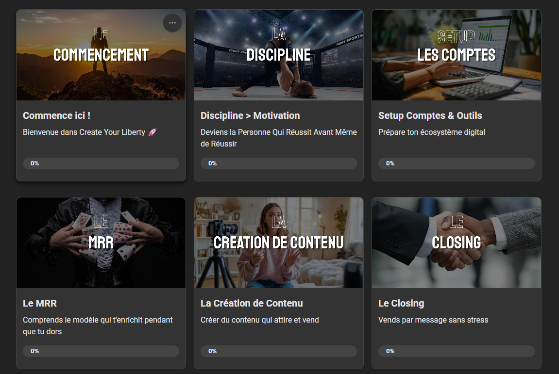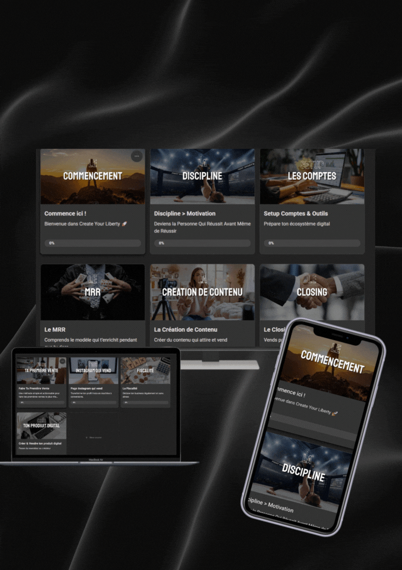 Tu va accéder à une communauté privé active qui se sont lancer comme toi, 12 vidéo, un coaching par semaine, accÚs a la formation complÚte, un plan de 7 jours et un produit MRR à revendre.
